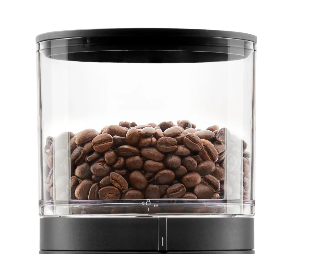 Je vybavená vzduchotesným vekom a vyrobená z plastu ošetreného UV filtrom, čo oboje pomáha zachovať čerstvosť nasypaných kávových zŕn. Pojme až 340 g kávových zŕn.