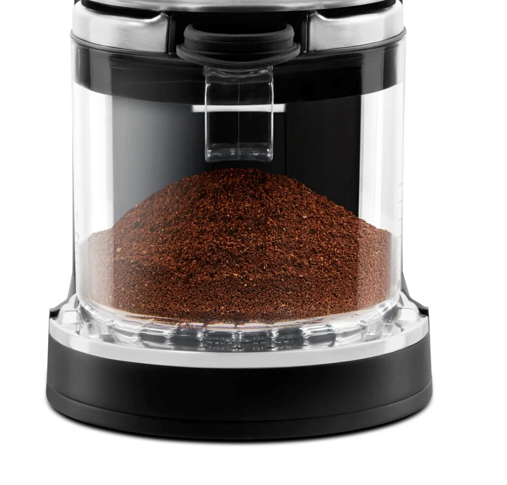 Nový mlynček KitchenAid 5KCG8433 je prispôsobený na rad spôsobov prípravy kávy, od najjemnejšieho nastavenia na prípravu espressa až po najhrubšie nastavenie pre cold brew. Pomocou kolieska na voľbu dávkovania môžete voliť medzi 1 a 2 dávkami espressa alebo medzi 1 až 12 šálkami kávy.