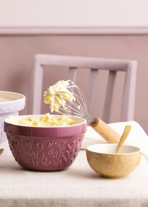 Kolekciu tvorí 3 misy na cesto Mason Cash s reliéfnými kvetinovými vzormi v krémovej, svetlo žltej a netradičnej purpurovej, rovnako ako v morskej kolekcii Nautical opäť kameninová misa s uchom (batter bowl) a so zlievacím zobáčikom, tentokrát v tradičnej krémovej farbe a sada 4 malých, viacúčelových misiek v jemných pastelových farbách.