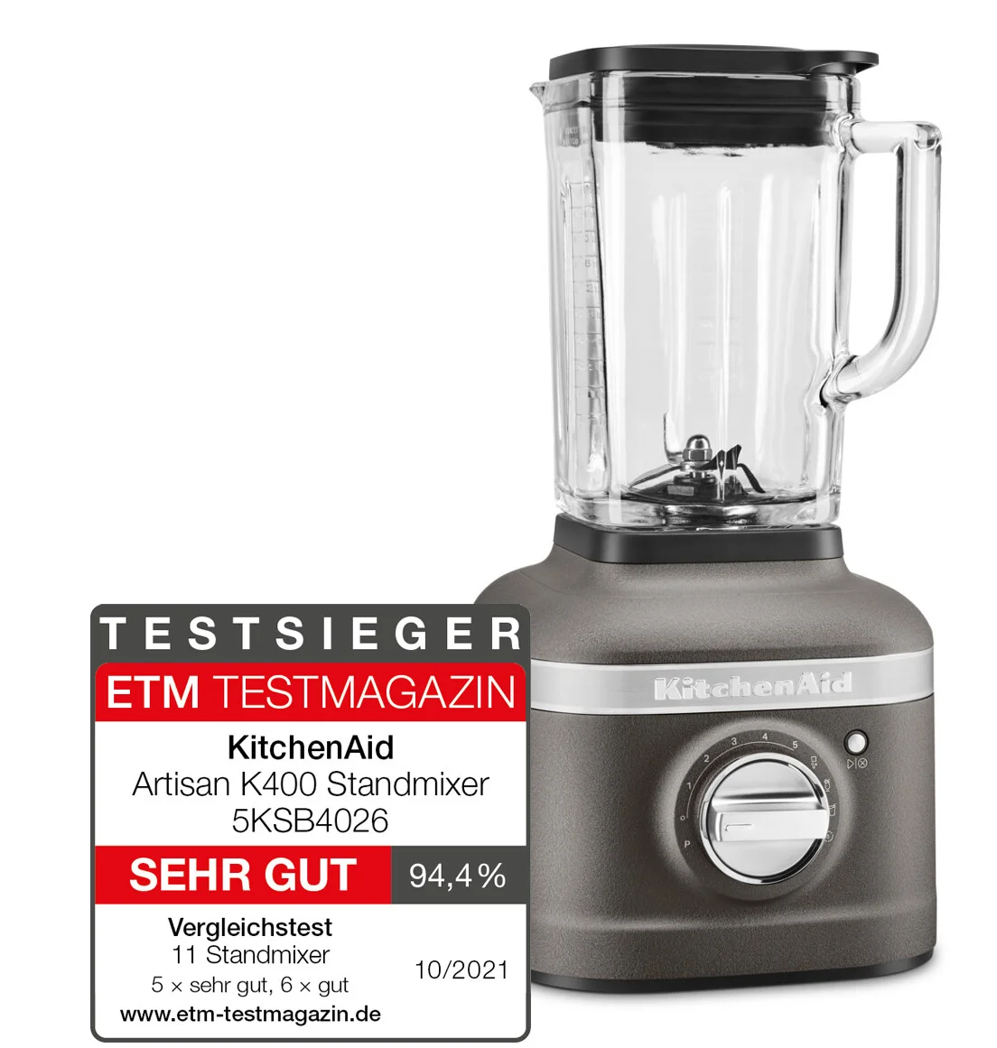 Blender KitchenAid Artisan K400, rovnako ako ostatní členovia veľkej rodiny KitchenAid, vám nielen uľahčia veľa práce pri príprave krémových polievok, omáčok, pyré alebo smoothie a letných koktejlov, ale tiež vďaka svojmu štýlovému, zaoblenému a nadčasovému retro dizajnu a kvalitným materiálom bude dlhodobou ozdobou vašej kuchyne.