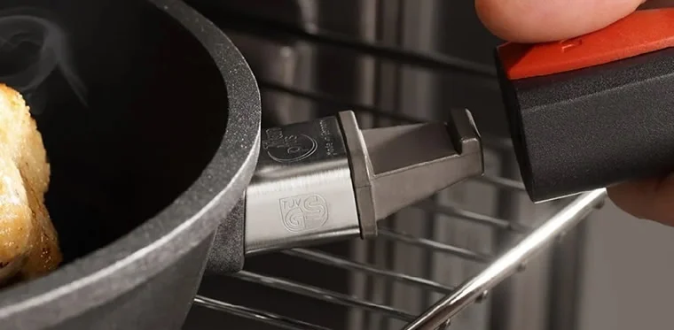 Odnímateľné rukoväte zvyšujú bezpečnosť pri varení s malými deťmi, panvice sa ľahšie vkladajú do umývačky riadu a na ich uskladnenie potrebujete len malý priestor, pretože panvice sa dajú stohovať.