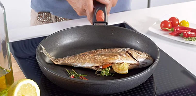 Panvica na ryby s odnímateľnou rukoväťou od nemeckého výrobcu WOLL, kolekcia Nowo Titanium s odnímateľnou rukoväťou. Panvica je vyrobená z tvrdenej hliníkovej zliatiny a má odolný nepriľnavý titánový povrch. Je vhodná aj na indukciu a môžete ju umývať v umývačke riadu.
