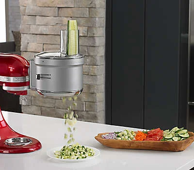 Prídavný food processor pre váš kuchynský robot KitchenAid. Spracuje všetky druhy zeleniny aj ovocia, poradí si aj s tvrdými syrmi. Krája na kocky, strúha, strúha aj krája na plátky a hlavne šetrí váš čas.