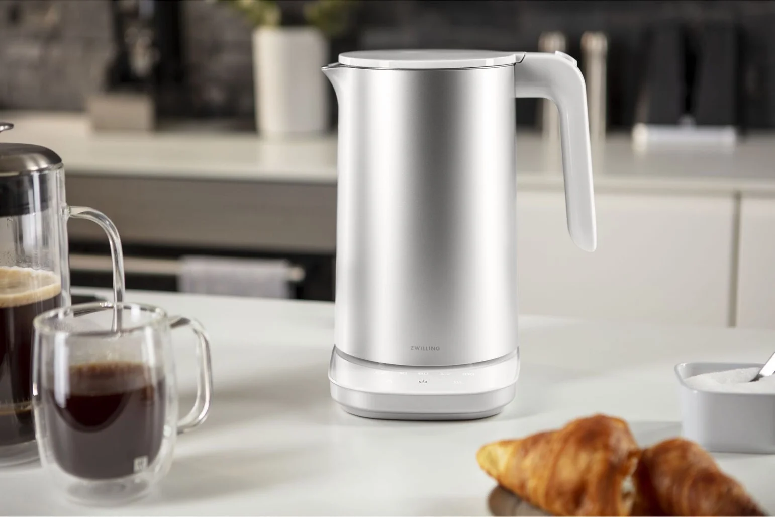 Programovateľná rýchlovarná kanvica Enfinigy Pro nemeckej značky Zwilling v modernom dizajne bola vyrobená s objemom 1,5 litra. Uľahčí vám prípravu pomocou 7 vopred nastavených teplôt varenia na prípravu kávy, čaju alebo prípravu potravín pre najmenších. Umožňuje tiež ohrev v dojčenskej fľaši či jej sterilizáciu.
