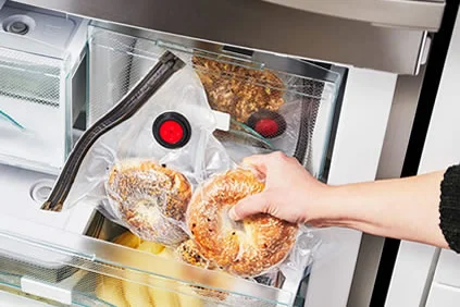 Dokonale tesniace sáčky sú perfektné na použitie v mrazničke. Môžete zamraziť večeru pre celú rodinu vo veľkom sáčku, alebo jednotlivé porcie v menších sáčkoch. Vďaka dokonalému tesneniu v mrazničke predchádza tzv. freezer burns (poškodeniu potravín "spálením" mrazom pri zlom spôsobe zamrazenia). Potraviny uskladnené v sáčkoch v nich môžete aj rozmrazovať a ohrievať v mikrovlnnej rúre (s uvoľneným vákuovým ventilom).