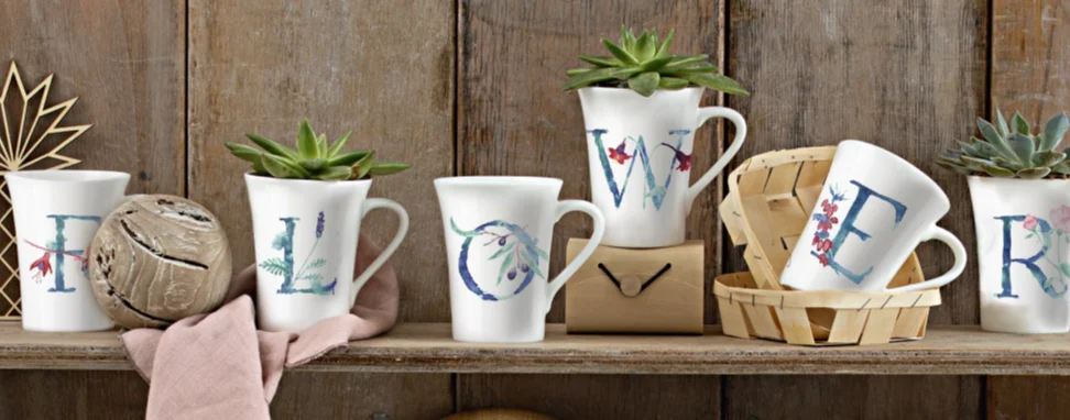 U nás nie veľmi známe ale aj úplne bežné kvetinky nájdete na 26 farebných hrnčekoch v novej darčekovej kolekcii „Kvetinová abeceda“. Každé písmeno totiž zodpovedá jednej kvetinke, presnejšie je počiatočným písmenkom jej latinského názvu. Nemusíte však byť botanik, aby vás celá kolekcia nadchla. Na hrnčekoch z bieleho glazovaného, jemne priesvitného, prémiového kostného porcelánu nájdete v jemných akvarelových farbách takmer celý kvetinový atlas: astry, begónie, fialky, krokusy, primulky, ruže či tulipány, ale tiež taká exotika ako quamoclit lobata (povijnica dlanitolistá) alebo napríklad xeranthemum (suchokvet).