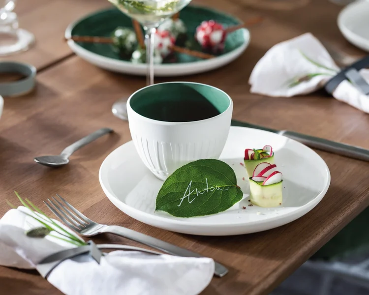 Rastliny však neponúkajú iba pestré farebné kvety rôznych tvarov a veľkostí. Jednoduché listy s jednoduchými líniami sú rovnako hodnotnými zástupcami biofilného designu ako žlté narcisy či ružové tulipány. Ak ste fanúšik jednoduchých motívov a jemných farieb porcelán z kolekcie It's my match značky Villeroy & Boch by nemal ujsť vašej pozornosti.