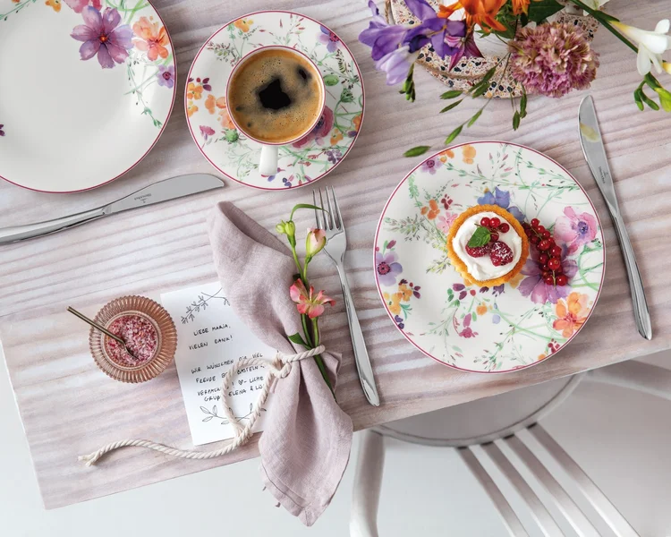 Pokiaľ milujete romantické zátišie ako vystrihnuté z románu Jane Austin, zbystrite. Okázalé kvetinové motívy pripomínajúce štýl Cottage core budú ideálne v jemných pastelových kuchyniach, vintage interiéroch aj starožitných jedálňach, ktoré v sebe skrývajú štipku nostalgie. Či už zvolíte riad Mariefleur alebo Rose Garden od Villeroy & Boch, rozhodne nešliapnete vedľa. Čisto biely porcelán s ružovými okvetnými lístkami sa stane ozdobou každého prestretého stola. Jednotlivé kúsky sa medzi sebou dajú navyše skvele kombinovať.