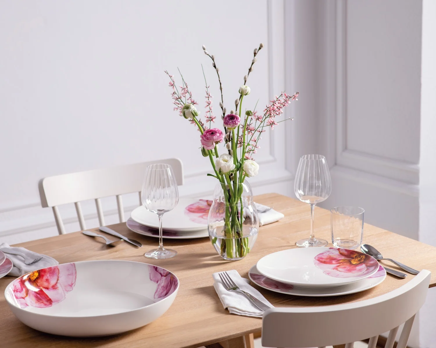 Podstatu rastlín a kvetov však môžete pojať aj viac kreatívne. Príkladom môžu byť doplnky a riad zdobený týmto motívom. Biofilný dizajn ponúka mnoho spôsobov, ako docieliť vytúžený výsledok. Jedným z nich môže byť aj elegantný porcelán dekorovaný jemnými kvietkami z kolekcie Grand Air značky Rosenthal, vďaka ktorým si svoj nedeľný obed vychutnáte na rozkvitnutej lúke v prítomnosti hrejivých slnečných lúčov.