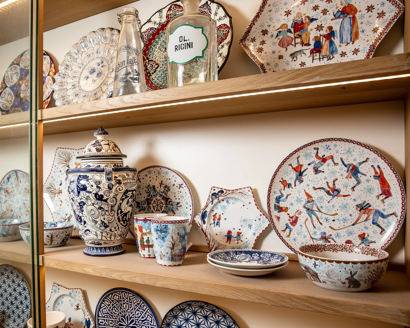 Máme slávnostné misky na kosti, sú staré asi 150 rokov. A iné zdedené servisy z tej doby mám schované alebo rozvešané po stenách. Nádherné kobaltom zdobené taniere, majoliku, ľudové misky.