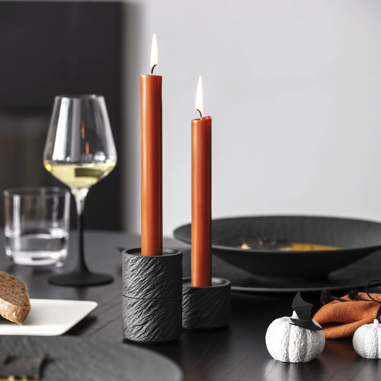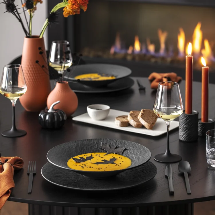 S Halloweenom je neodmysliteľne spojená kombinácia čiernej a oranžovej farby. Oranžové obrusy vnesú do vašej kuchyne kúsok jesene a v kombinácii s čiernym servisom, ktorý je symbolom temnej halloweenskej noci, dodá vašej večeri eleganciu.