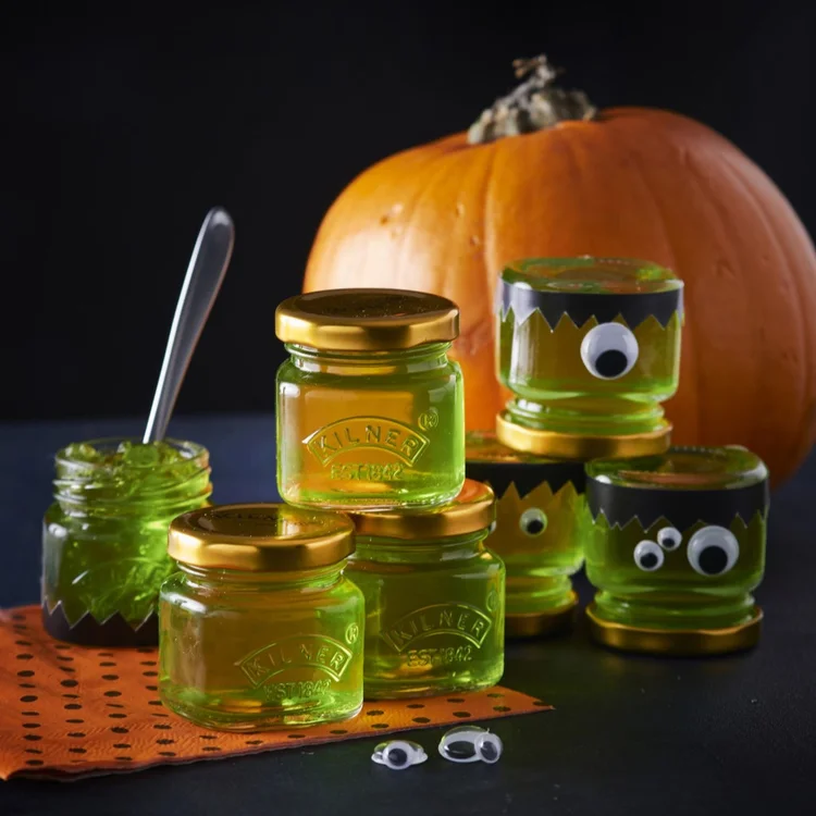 Pokiaľ ale vsádzate na istotu, využite sklenené dózy Kilner, ktoré sú na servírovanie sladkostí v strašidelnom štýle. Ich transparentný povrch ponúka priestor kreativite. Použite samolepky, trblietky, gázy či umelú krv a pretvorte klasické dózy na cukrovinky na originálnu halloweensku výzdobu.