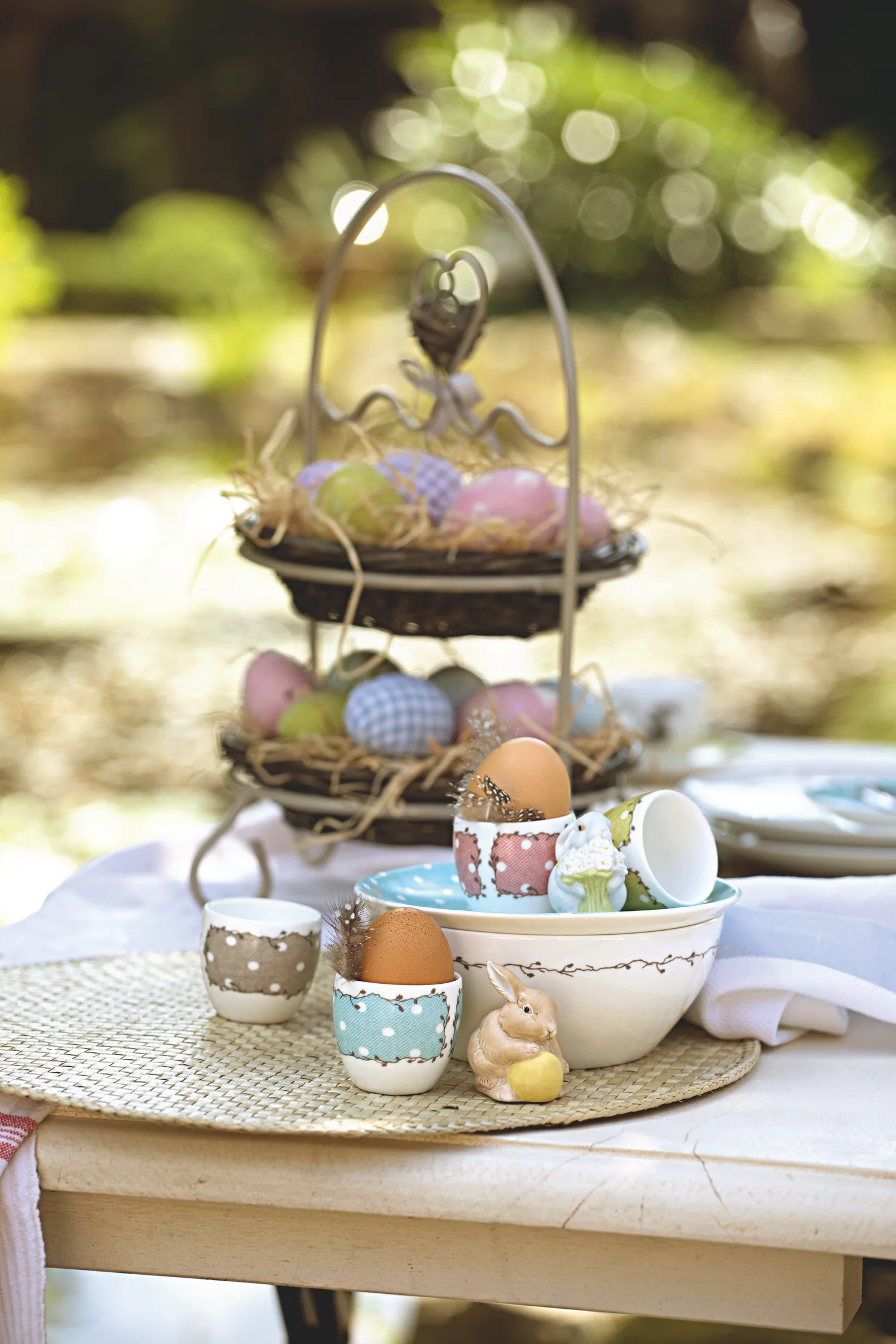 Je v znamení vajíčok vo všetkých možných podobách – bielych, farebných, maľovaných, čokoládových, vyfúknutých či uvarených na tvrdo, len tak samotných, v nátierke alebo v šaláte či v sekanej ... Ak by ste mali chuť na vajíčka aj na raňajky, pozrite sa na roztomilé porcelánové misky a stojančeky, ktoré potešia deti aj dospelých.