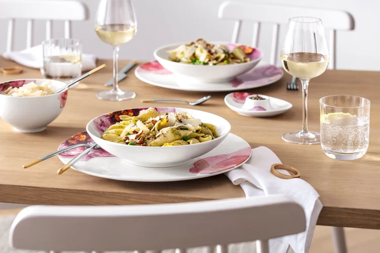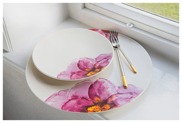 K Valentínu neodmysliteľne patria kvetiny, či už vo váze, alebo ako darček. Tradičné sú predovšetkým ruže všetkých farieb. Týmto romantickým kvetinovým motívom sa inšpirovala aj kolekcia Rose Garden od Villeroy & Boch. Celú kolekciu doprevádza akvarelový motív s jemnými detailmi. Nežné tóny ružové sú navyše voľbou pre valentínsku večeru, ale využijete ich aj pri každodennom stolovaní.