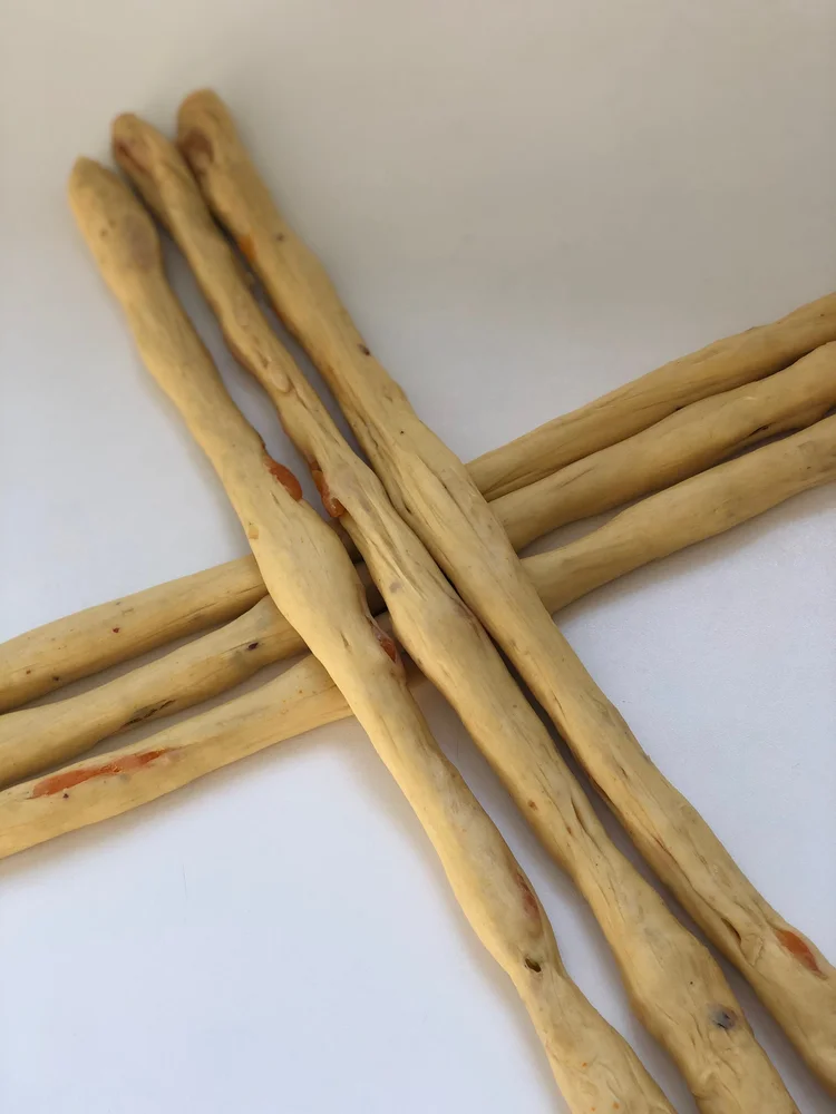 - Vykysnuté cesto rozdeľte na 6 rovnako veľkých dielov a vyvaľkajte na pramene.